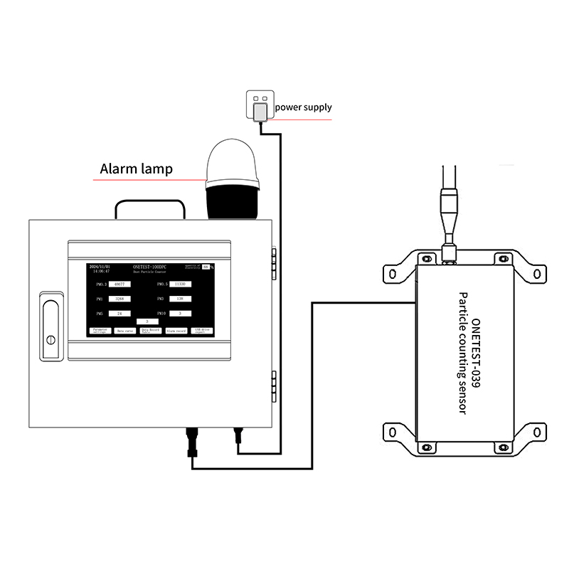 ONETEST-039 is a multi-channel particle counting sensor based on the principle of laser scattering, which can accurately measure 6 particle sizes including 0.3μm, 0.5μm, 1μm, 3μm, 5μm and 10μm in the industry. Through the standard RS485 interface and Modbus-RTU protocol, data is transmitted in real-time to various intelligent terminals, reducing human participation and achieving unmanned intelligent monitoring. Realize continuous real-time monitoring for 7*24 hours in various dust-free situations, reduce risks and costs.
